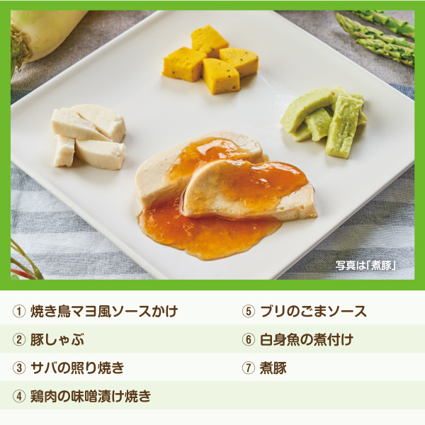 見た目はムースだけど味付けはいろいろ。咀嚼・嚥下のしやすい舌触りとのどごしを実現しました。